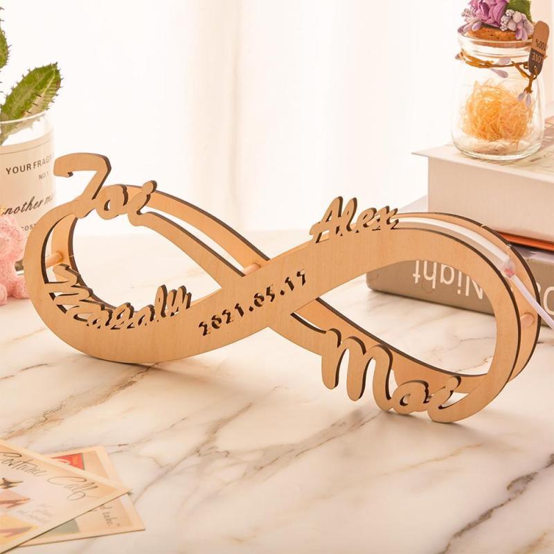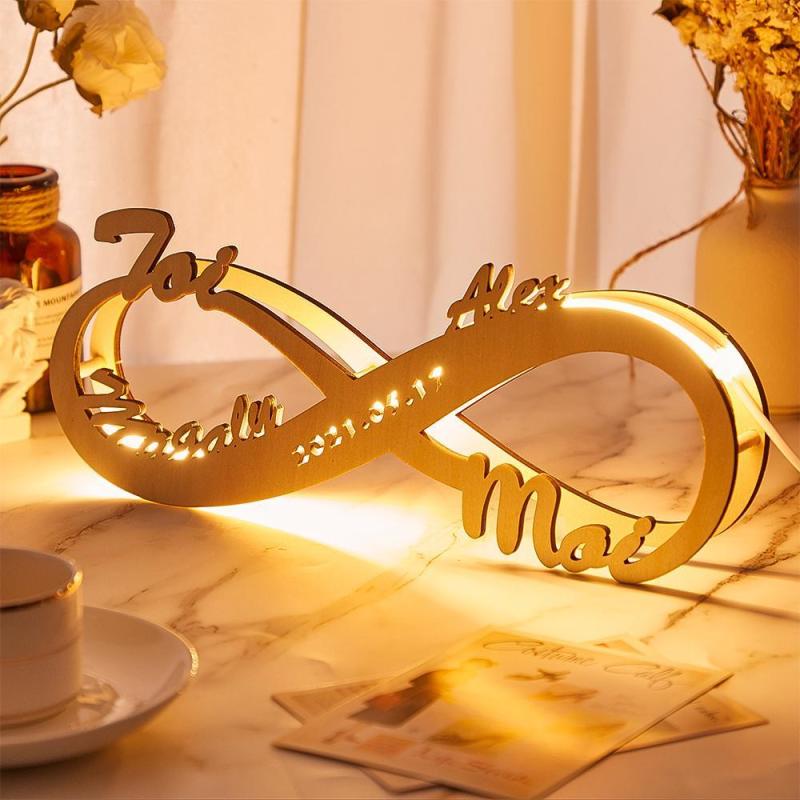 Cadeaux de Noël Lampe En Bois Gravée Personnalisée Infinity Je T'aime Veilleuse