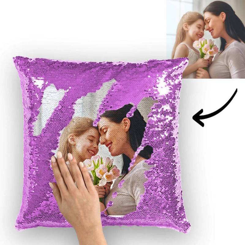 Taie de Coussin à Paillettes Magiques Noires avec Photo Personnalisée Coussin à Paillettes Cadeaux Uniques 15,75 pouces * 15,75 pouces