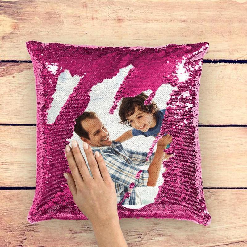 Coussin à Paillettes Magiques Roses avec Photo Personnalisée Coussin de Décor à la Maison 15,75 pouces * 15,75 pouces