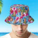 Chapeau Bob Personnalisé, Imprimé Floral Tropical, Chapeau De Pêcheur Hawaïen, Imprimé Visage Personnalisé - Fleurs Roses