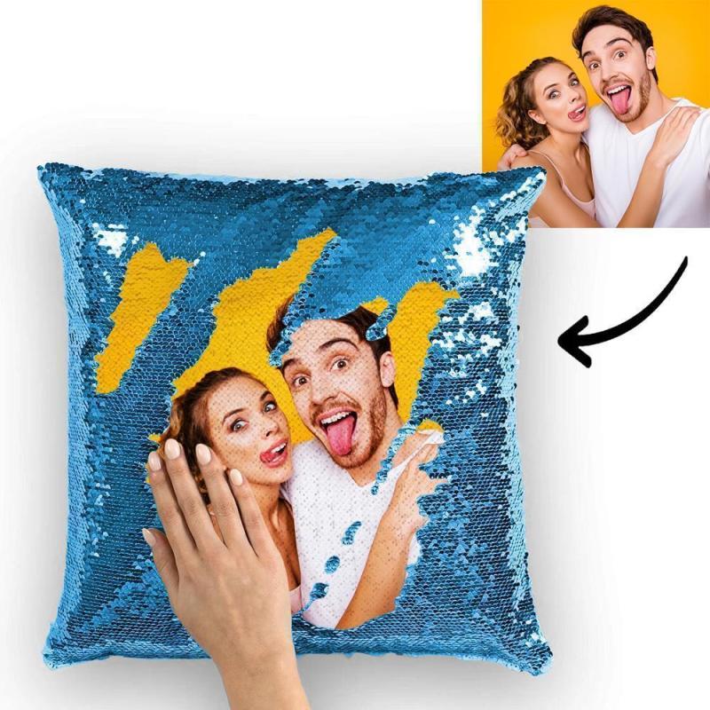 Coussin à Paillettes Magiques Personnalisé Photo de Couple Mignon Coussin à Paillettes MultiCouleures 15,75 pouces * 15,75 pouces