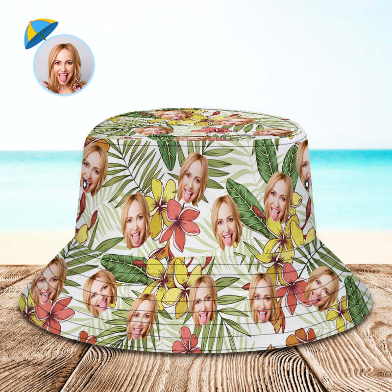 Chapeau Bob Personnalisé Unisexe Avec Photo Personnalisée, Casquette D'été À Motif Tropical, Chapeaux De Randonnée Et De Plage, Cadeau Pour Amoureux