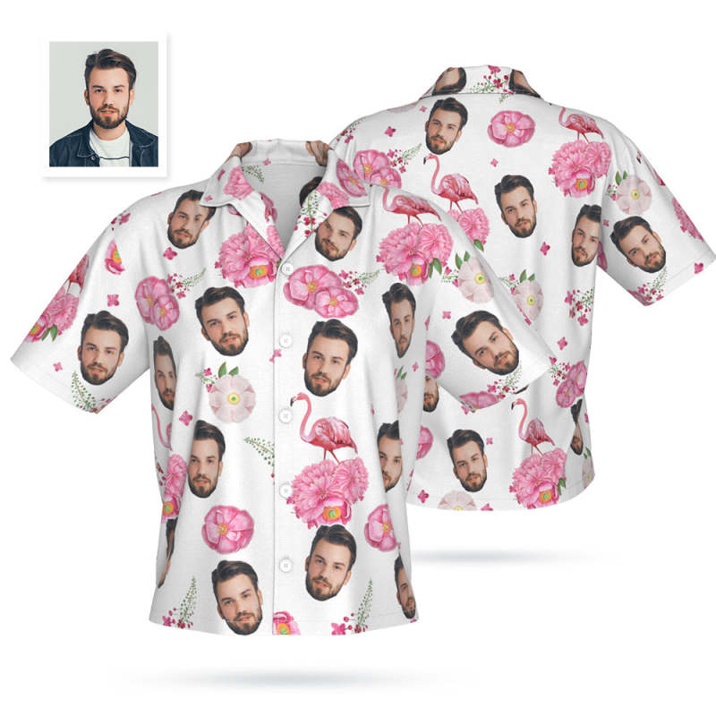 Chemise Hawaïenne Personnalisée Avec Photo Pour Femme - Flamant Rose
