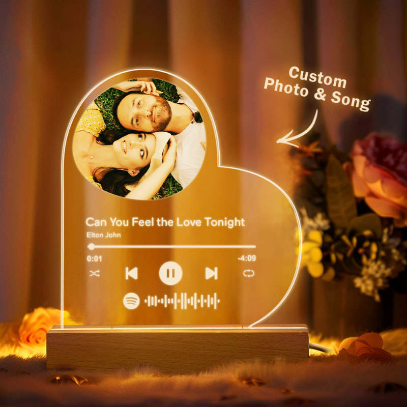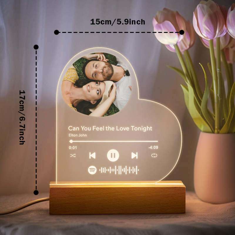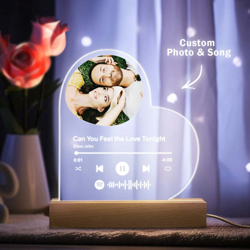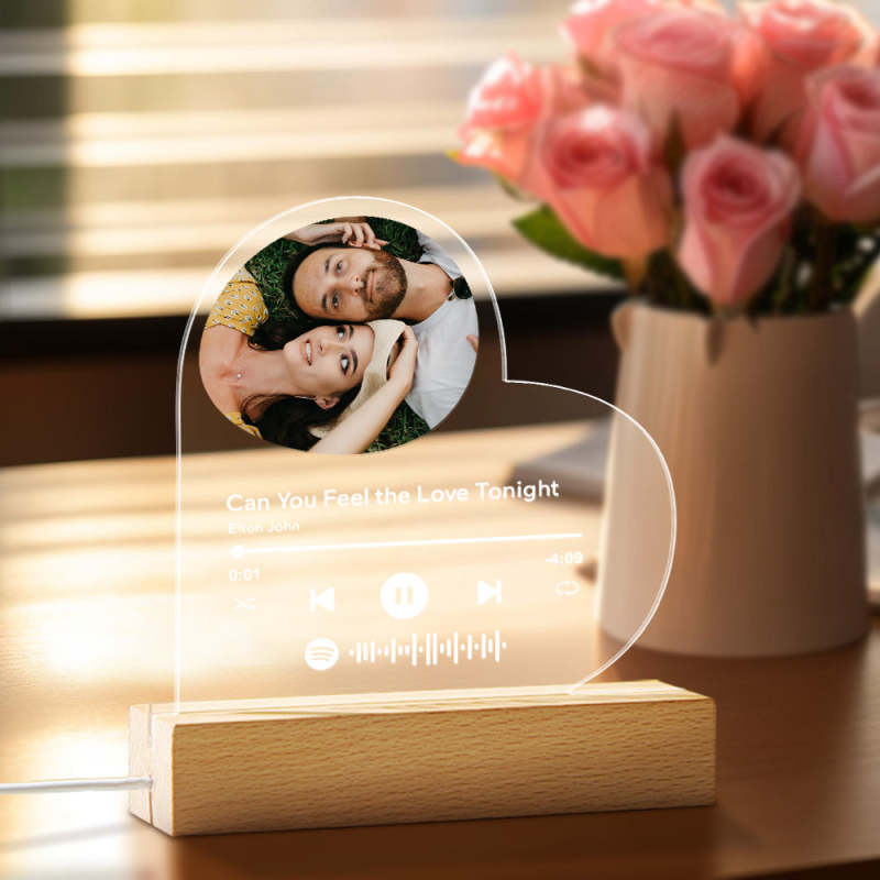 Lampe Acrylique En Forme De Cœur Personnalisée Avec Base À Fente Filaire - mademinefr