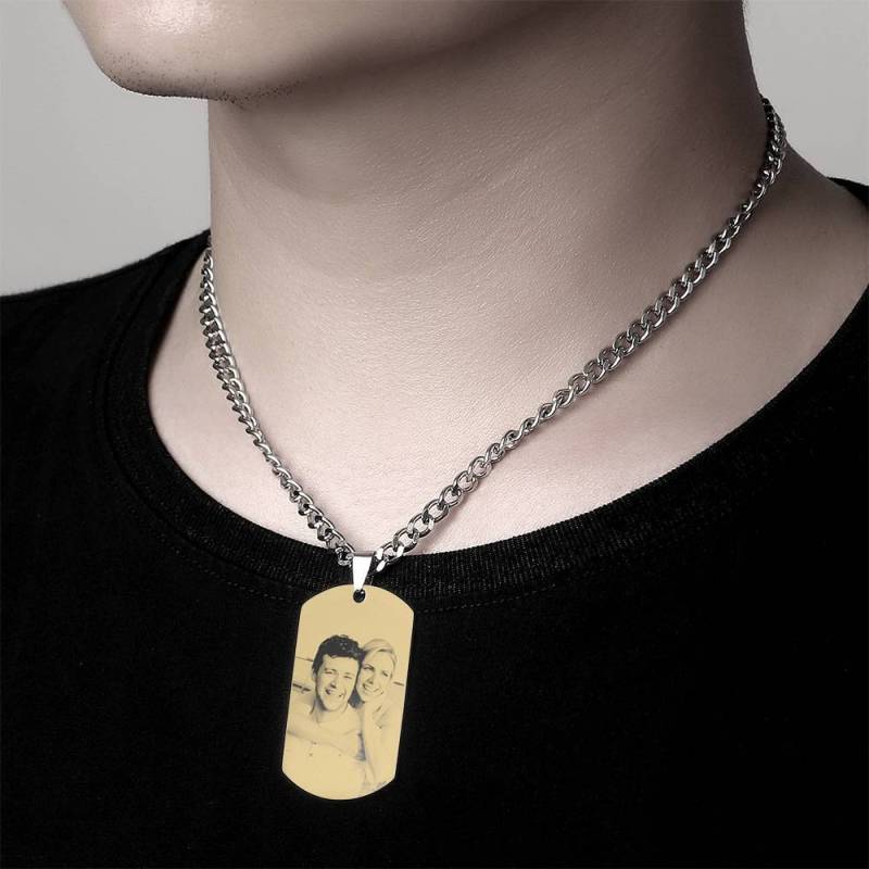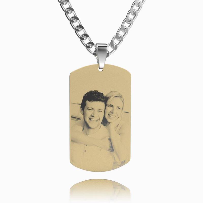 Collier Tag Gravé avec photoPendentif en Acier Inoxydable Plaqué Or 18K pour Homme