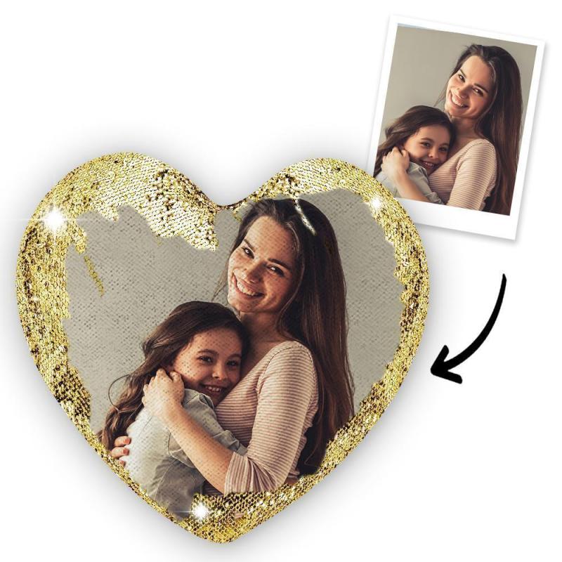 Coussin à Paillettes Magiques En Forme de Coeur Photo Personnalisé Coussin à Paillettes MultiCouleures